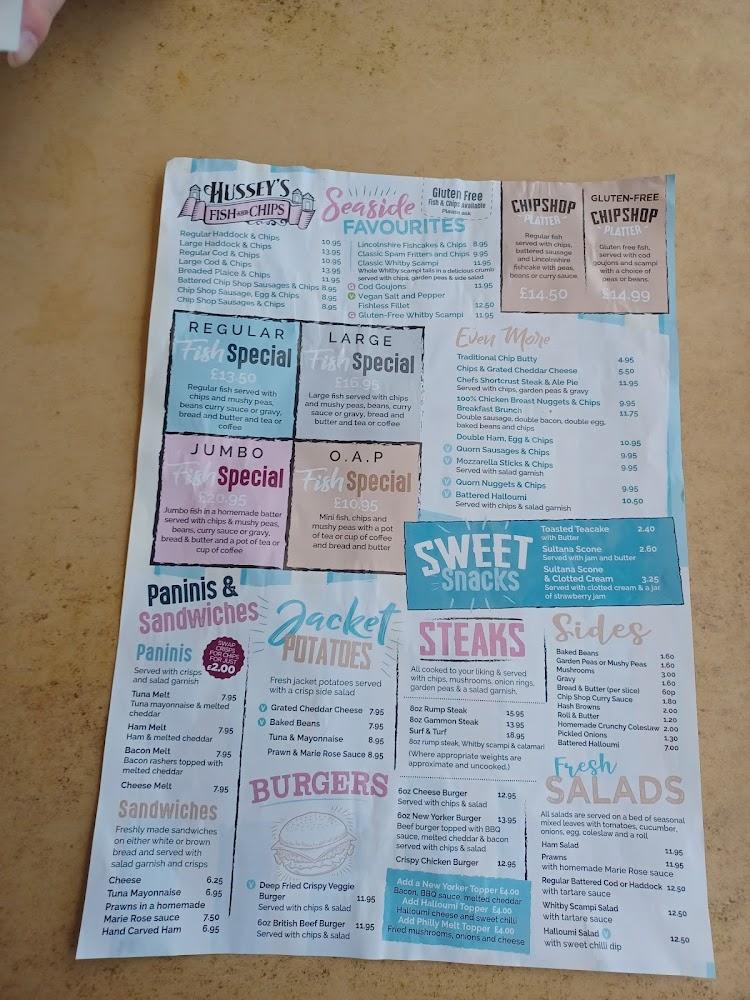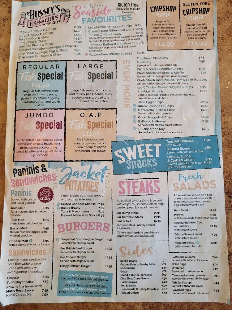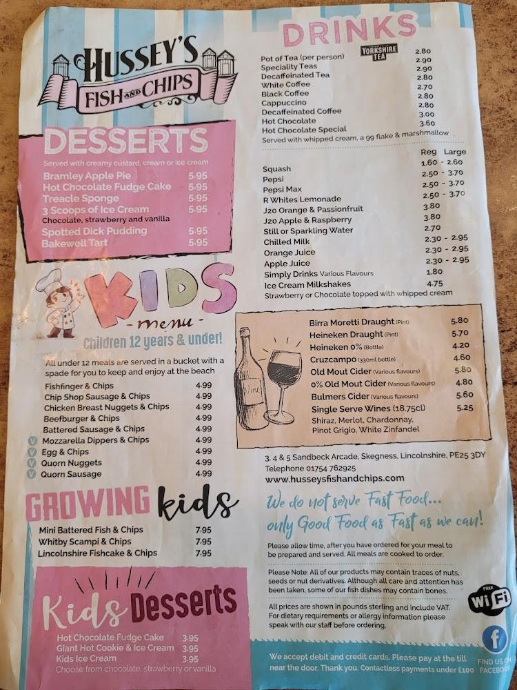 Hussey’s Fish & Chips enjoys a prime location at 3-5 Sandbeck Ave in the lively town of Skegness, just a short walk from the iconic Clock Tower. This bustling seaside town captures the spirit of British holidays, and Hussey’s perfectly embodies that nostalgic vibe. The restaurant welcomes both locals and visitors with its friendly service and vibrant atmosphere. With outdoor seating options available, patrons can enjoy their meals while soaking in the coastal air. The establishment is wheelchair accessible, accommodating all guests, which adds to its appeal as a family-friendly dining option. Parking is convenient, with paid options nearby, making it easy to stop in for a meal anytime. Known for their quick service, Hussey’s operates every day of the week, making it a reliable choice for both lunch and dinner.